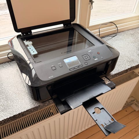 Canon MG7750 multifunksjonsskriver i svart. Skriveren har skanner- og kopifunksjon.