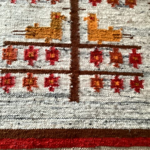 Håndlaget billedvev / veggteppe / åkle med fargerikt motiv.
