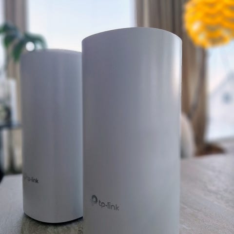 TP-Link Deco BE65 Wifi 7 router mesh-system . Systemet består av to enheter for trådløst nettverk i bolig eller kontor. Hver enhet har flere Ethernet-porter for kablet tilkobling av utstyr. Mesh-systemet er laget for å gi helhetlig Wi‑Fi-dekning i hjemmenettverk og kan plasseres ulike steder i boligen etter behov.