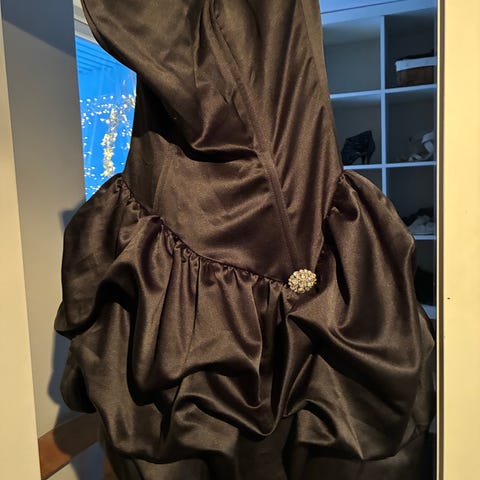 Vakker sort utsvingt stroppeløs kjole (tubetopp) i str s