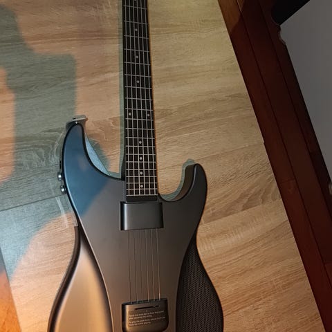 Elektrisk gitar nylon Kroppen har natur/brun finish og moderne dobbel cutaway-form. Gitaren har seks strenger, to kontrollknapper og fast bro. Stemmeskruene er åpne og plassert tre på hver side av hodet.