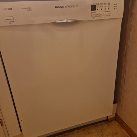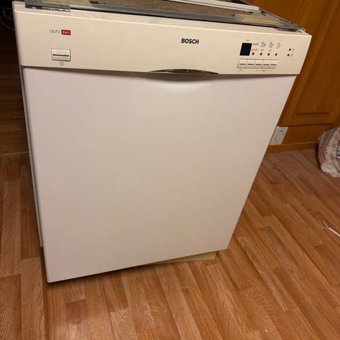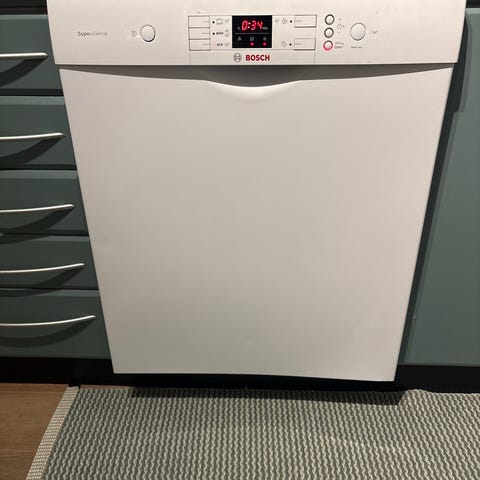 Bosch underbygd oppvaskmaskin i hvit utførelse. Modellen er beregnet for integrering under benk og har frontpanel med mekanisk programvelger og indikatorlamper. Innvendig har maskinen to kurvnivåer med overkurv for glass og kopper, samt underkurv med bestikkurv og plass til tallerkener, kjeler og annet servise. Maskinen kobles til eksisterende vann- og avløpsopplegg og passer inn i standard kjøkkenløsninger for underbygde oppvaskmaskiner.