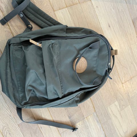 Fin sekk, men noen bruksmerker. Mangler to merker som skal festes med borrelås på siden. Dattera ville ikke ha de og de har blitt borte. Penal følger med.