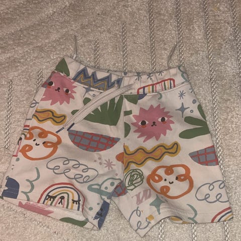 Marc Jacobs shorts for barn i str. 152. Unisex-modell i myk bomull med flerfarget design. Shortsen har elastisk linning, sidelommer og baklommer, samt logo langs sidene. Passer til hverdagsbruk og fritidsaktiviteter.