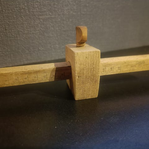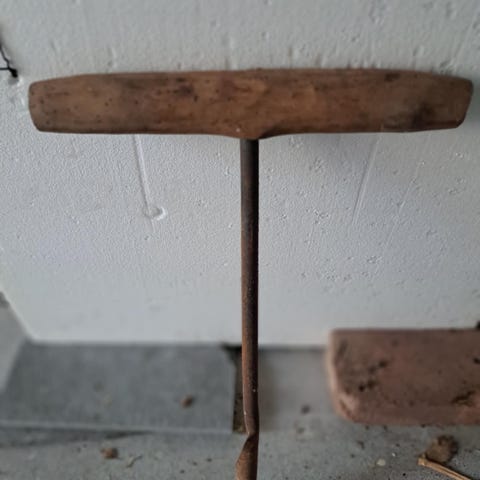 Redskap til å hespe garn på. Skaft til å holde i, med et tverrtre i hver ende, vinkelrett på hverandre.