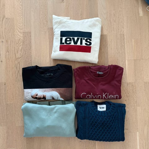 Jentungen selger unna litt klær, str XS’-m men mest i str s. Hu ønsker 800kr for dette.