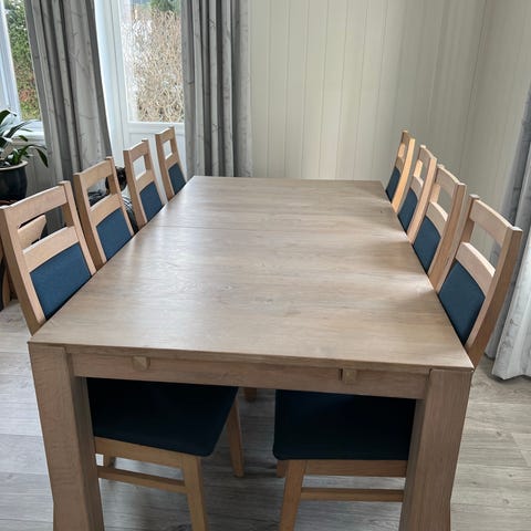 Spisebord eik. Ukjent hvor det er kjøpt og merke. Ca 9 år gammelt.