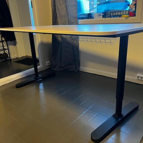 Godt brukt justerbar skrivepult. Plata på toppen kan justeres opp og høyden kan justeres fra 62cm og oppover. Var en liten skuff under, men feste til denne ble ødelagt så den er ikke der lenger. Ellers fungerer den som den skal, men trenger nok en liten vask.