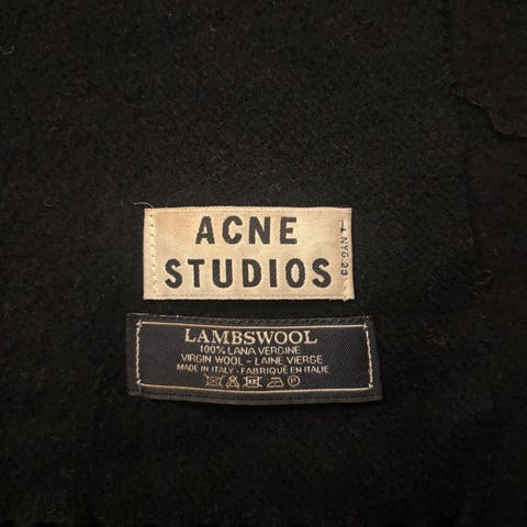 Acne Studios oversized skjerf i grå farge selges. Fremstår som tilnærmet nytt og er svært lite brukt.
