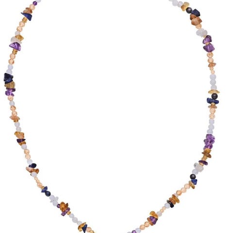 Halskjede med stjernetegn tyren/virgo i 925 gullbelagt sølv og lenke med diverse halvedelstener, bl.a ametyst og rosenkvarts. Lengde ca 45 cm. Kommer i original eske - ypperlig gaveidé til deg selv eller noen andre du er glad i.