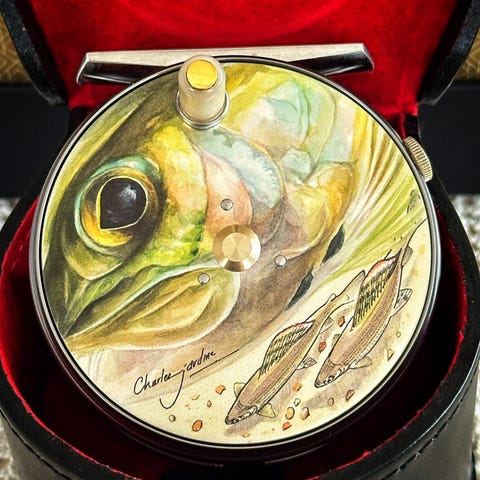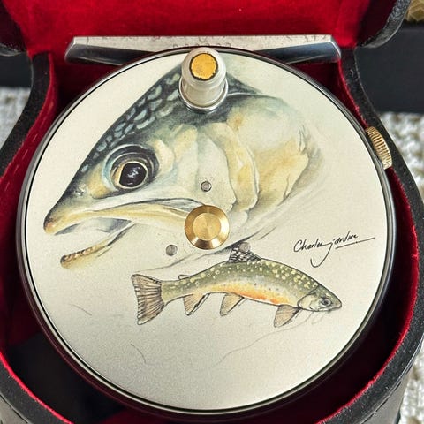 Samleobjekt 148/150 i verden. Hardy Hotspur Cascapedia 10/11 fluesnelle med tilhørende skinnetui og sett med laksefluer. Det hører med til historien at nummer 000 av denne unike produksjonen med emblemet til Duke of Northumberland ble gitt til Prinsen of Wales, mens nummer 002 gikk til Hans Majestet Kong Harald den 5. av Norge. Nummer 001 ble solgt på auksjon for over 600 000 kroner!! Unik og håndlaget i England med Duke Emblem på snelle. Kun ligget i eske, meget høy kvalitet og samleverdi.