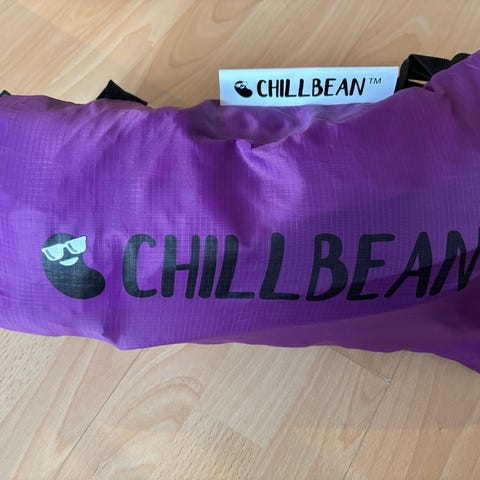 Den fylles med luft,se bilde. Også blir den en deilig sofa stol på tur, i hagen, på stranda, på camping eller til å flyte på i vann