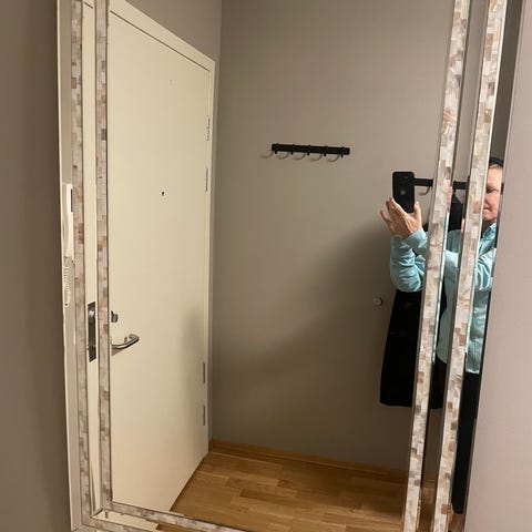 Stor speile med malt tre ramme. 1970-talls IKEA. Er 90cm bred og 130cm høy. Hentes på Frogner/Oslo.