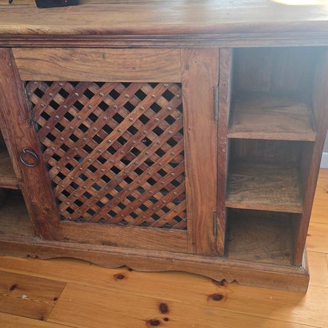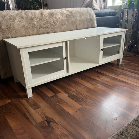 Pent brukt kommode / tv benk med to hyller inne i skapet.
