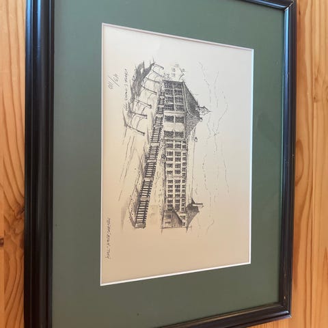 Mål på trykket: 76 × 57 cm. Signert og profesjonelt innrammet. Svært pen stand.