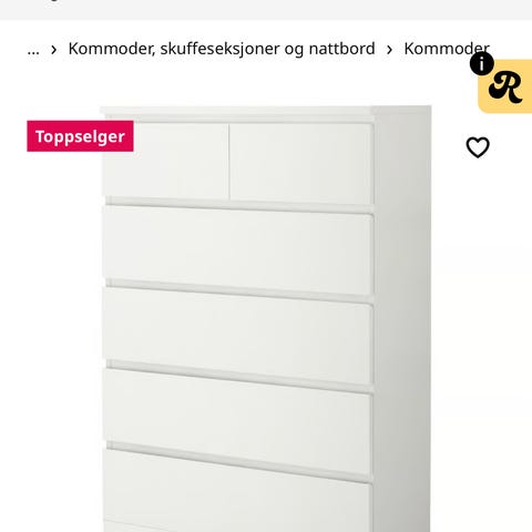 Nesten ubrukt kommode selges. Ingen bruksmerker, slitasje, riper eller flekker.