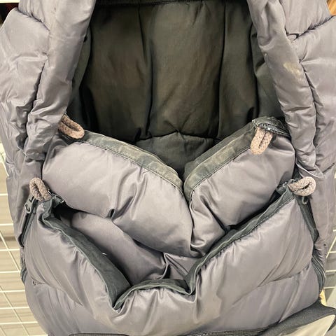 Oppbevaringsbag og bruksanvisning følger med. Pingvinputa som er avbildet i brosjyren følger ikke med, men vil ikke savnes (vi brukte den ikke) ☺️