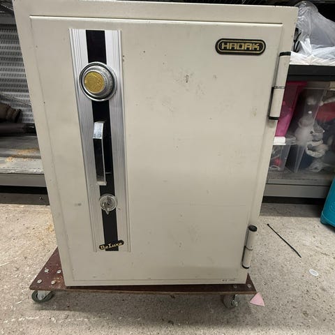 SAFE" og den røde logoen er veldig typisk for japansk kontordesign fra slutten av 70-tallet og utover 80-tallet.