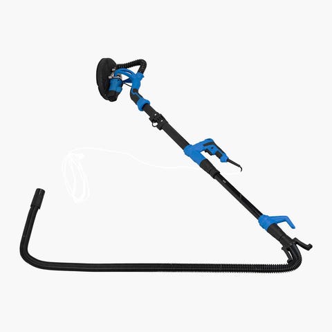 Meec Tools Red Series vegg- og taksliper med effekt på 1220 W og slipeskive på 225 mm. Egnet for sliping av vegger og tak innendørs, for eksempel ved forberedelse til maling eller tapetsering. Leveres med sugeslange og oppsamlingspose for støv. Elektrisk drevet modell med håndtak som gir støtte ved arbeid over hodehøyde og på større flater.