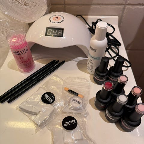 Vurderer å selge alt av utstyr. Uv lampe, eletrisk fil, vifte som samler støv fra filen, gellak (fra gul, grønn, lilla, grå, hvit, rød, rosa, brun, sort ++) flere er ubrukt, builder gel (blank, rosa, hvit, rød ) Neglelim, tipper.