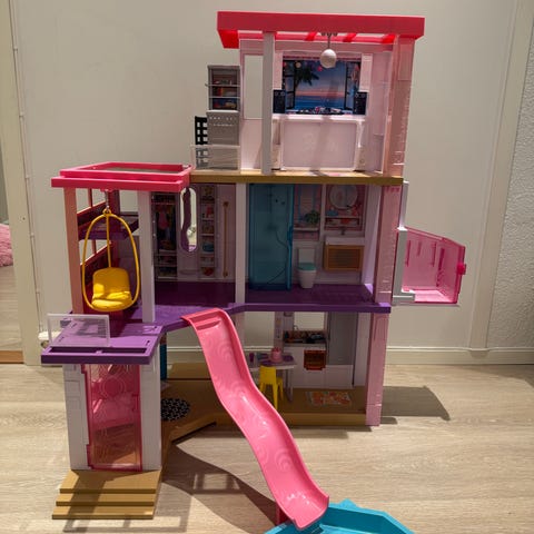 Selger et stort, flott barbiehus, da jentene mine ikke bruker det lengre. Det er i god stand med noen bruksmerker. (Skrapemerker på gulvet) Det følger med noen få møbler.