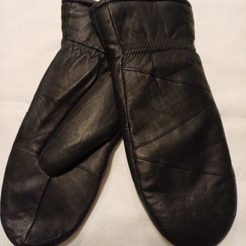 Skinnvotter, fóret. Sort farge. Tilsvarer ca str 6,5.