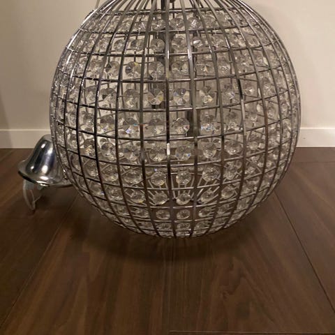 Elegant taklampe / lysekrone med sort skjerm og krystaller