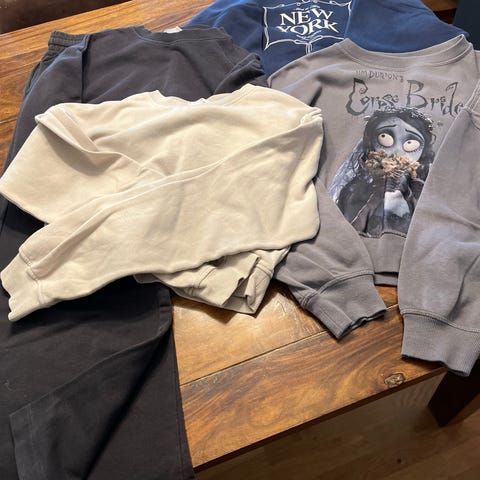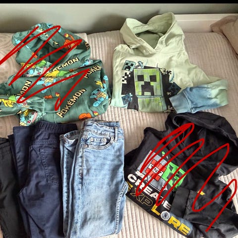 Det er diverse klær fra blant annet Name it, H&M, Adidas, Skogstad og KappAhl, Klærne er brukt kun av ett barn og i kort tid siden eieren vokste raskt ut av klærne.