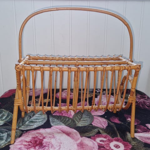 Kjempefin retro bladkurv i bambus, 70-talls.