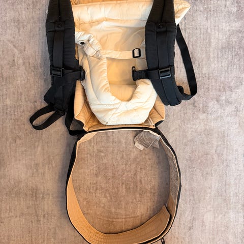 Ergobaby bæreselle i svart og beige tekstil.