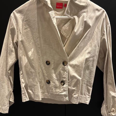 Pen vårjakke, lett og pustene, samtidig en viss tykkelse. Skolejakke/penjakke. Str S fra WOW, brukt av jente 10-12 år