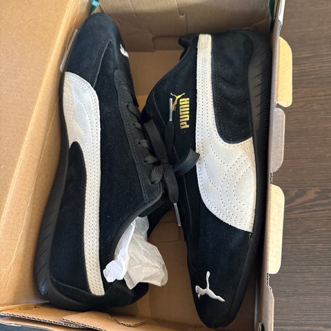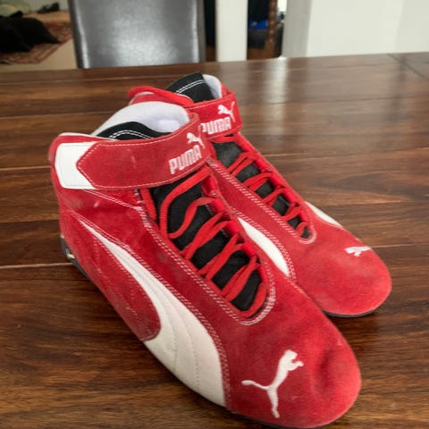 Sportslig motorsport-inspirert modell i semsket skinn med borrelås og lisser. Pent brukt og i god stand. Såle og overdel ser fine ut.