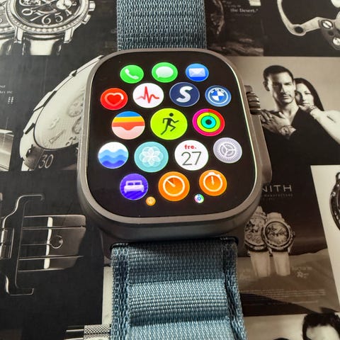 Apple Watch Ultra 3 smartklokke med 49 mm titanurkasse og svart metallreim. Klokken er designet for bruk med iPhone og har innebygde funksjoner for aktivitetssporing, treningsregistrering, varsler og andre smarte funksjoner. Skjermen er rektangulær med berøringskontroll, og klokken har en digital krone og en sideknapp for menynavigasjon. Remmen er justerbar og festes med en magnetisk lås. Passer for daglig bruk, trening og utendørsaktiviteter. Leveres i original eske med tilhørende dokumentasjon og ladetilbehør, batterikapasitet 100 prosent. Komplett sett. Nesten ny. Jeg kan diskutere prisen.
