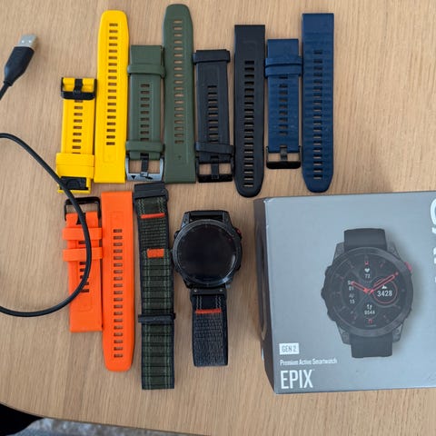 Selger min Garmin epix 2, da jeg ønsker å kjøpe meg ny Garmin klokke.