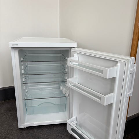 Kombiskap kjøleskap med integrert frysedel i hvit utførelse. Skapet har kjøledel med glasshylle og plastikkhylle, samt dørhyller for oppbevaring av flasker og mindre varer. I toppen er det en mindre frysedel med egen dør. Egnet som ekstra kjøleskap eller til mindre kjøkken, hybel eller hytte der det er behov for både kjøl og frys i ett skap.
