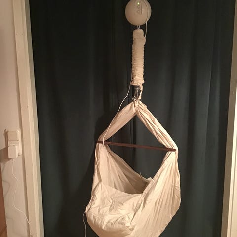 Medfølger oppheng til dørkarm, avstiverbunn, madrassbeskytter og himmel.