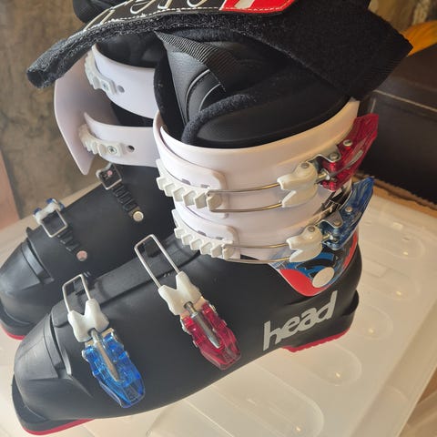 Head Raptor alpinstøvler i hvit farge med svarte og gule detaljer. Støvlene har fire spenner og powerstrap øverst for bedre tilpasning rundt leggen. Ytterskall i plast med tydelig Head-logo på siden. Støvlene har innerstøvel med polstring for økt komfort og støtte. Passer til bruk med vanlige alpinbindinger.