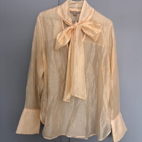 Lett og luftig stoff med lange, transparente ermer og dekorative knapper. Perfekt til både hverdag og fest. Pent brukt i god stand.