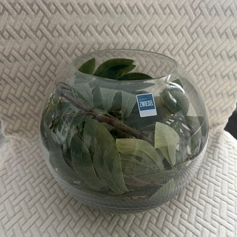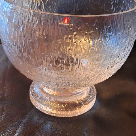 Klar glassbolle med dekorativt mønster i glasset. Mønsteret viser havliv.