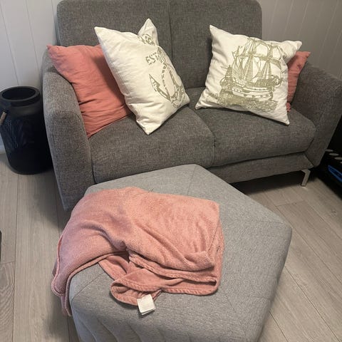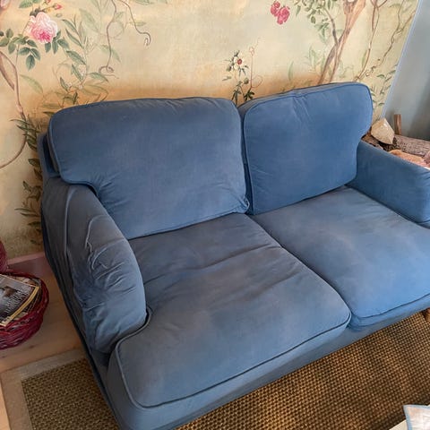 Sofaen er generelt hel og pen, støvsuges godt før salg men renses ikke. Nye trekk kan evt kjøpes på IKEA 😊