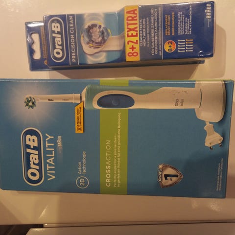 Oral-B utskiftbare børstehoder til elektrisk tannbørste.