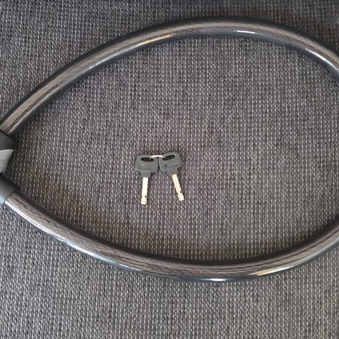 Sykkellås kjettinglås i svart farge. Låsen sylinderlås med nøkkel.