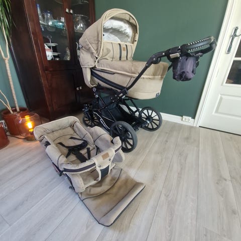 Emmaljunga duo edge. Sportsdel og liggedel. Ny i 2018. Integrert myggnett og solbeskyttelse. Regntrekk medfølger. Ingen skader. De siste årene er den kun benyttet som barnehagevogn.