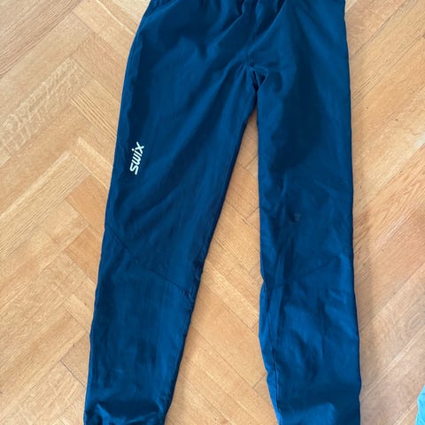 Swix junior langrennsbukse i størrelse 152. Buksen er blå og har strikk i livet og nederst ved bena. Den har glidelås nederst på bena for enklere av- og påkledning, samt Swix-logo på lår og legg. Egnet som trenings- eller overtrekksbukse for barn/junior til ulike uteaktiviteter og sport.