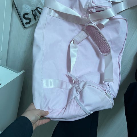 Rosa, godt brukt, men i fin stand.