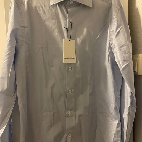 Selger en lyseblå skjorte fra Stenströms, modell Slimline, laget i Twofold Super Cotton.