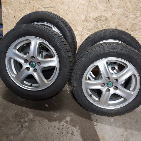 Selger fint 15" hjulsett med vinterdekk på 5x112 felger med Skoda senterkopper.