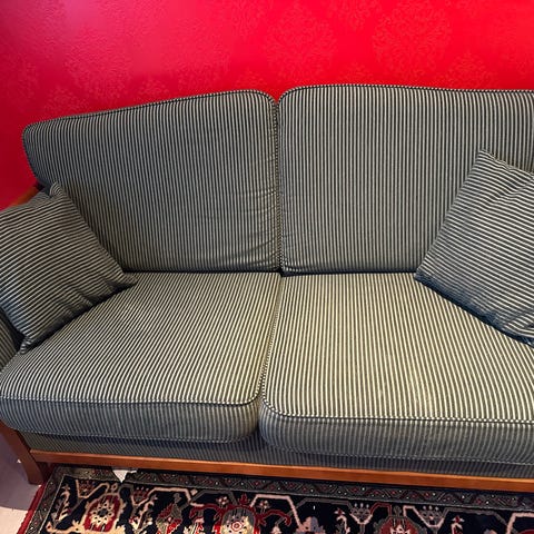 Blå sofa gis bort. Grei stand. Må hentes på Lund. 8.etasje. Passer dessverre ikke i heis, så må bæres ned. 😅