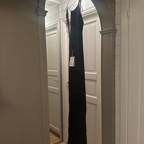Hale Bob festkjole for dame i størrelse XS. Lang, svart kjole med tynne stropper. Kjolen er laget i polyester. Passer til fest og andre formelle anledninger.