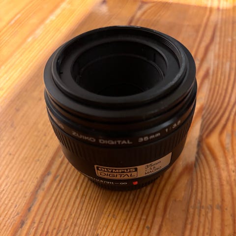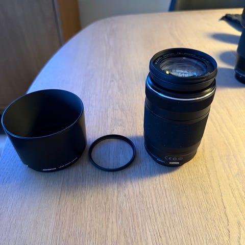 Olympus Zuiko Digital 70–300mm f/4–5.6 telezoomobjektiv i svart.